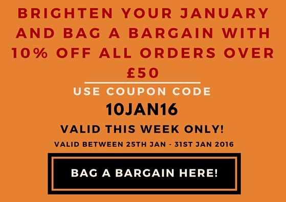 We ship all orders the same day up to a received time of 3 pm, and the offer will be running for the next 7 days. Order are shipped via Royal Mail for the lightweight smaller order and DPD 24hr service for parcels exceeding 5kg or more.