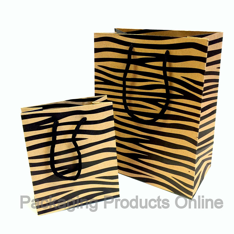 This range of tiger printed paper gift bags are made in paper grade 158gsm. They are perfect for a variety of uses such as birthday present bags, small gift bags or present bags, and . If you are looking for more wholesale quantities then give us call or get in contact through our contact form.