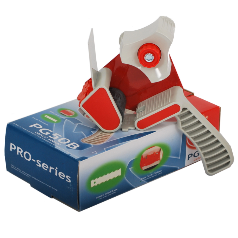 The hand tape dispenser gun makes using 50mm adhesive tape quicker and easier to use.